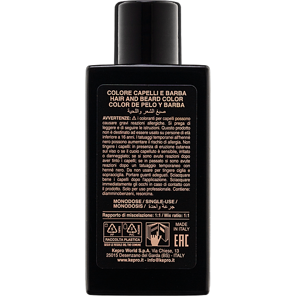 Маскує сивину всього за 5/10 хвилин, дозволяє отримувати надзвичайно натуральні результати фарбування. Завдяки холодним пігментам нейтралізує прояв небажаних теплих відтінків, які зазвичай проявляються в процесі фарбування чоловічого волосся.
